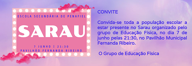 A Escola Secundária de Penafiel convida toda a população escolar a estar presente no Sarau organizado pelo grupo de Educação Física, no dia 7 de junho, pelas 21h30min, no Pavilhão Municipal Fernanda Ribeiro.