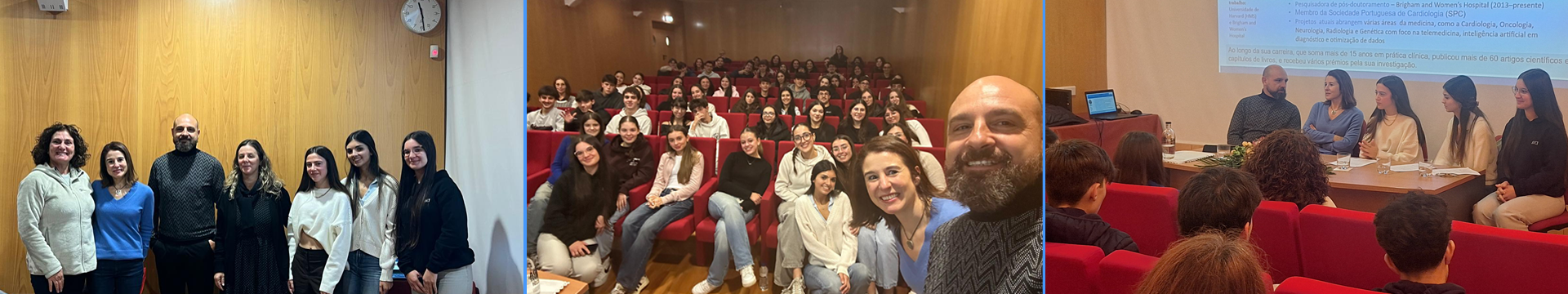 A convidada especial foi a Dra. Alexandra Gonçalves, Cardiologista e Investigadora que se encontra a trabalhar em Boston na Universidade de Harvard (HMS) e no Brigham and Women’s Hospital.Com mais de 15 anos de prática clínica, mais de 60 publicações científicas e vários prémios de investigação, a Dra. Gonçalves regressou com orgulho à escola onde estudou do 7.º ao 12.º ano, um momento especial também para ela ao reencontrar os espaços, agora renovados, onde começou o seu percurso, podendo dar o seu testemunho ao grupo de alunos que assistia à palestra.