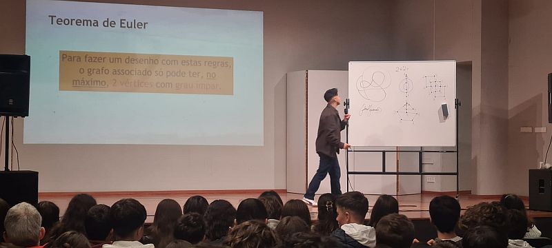 No passado dia 10 de dezembro, decorreu, no Polivalente da Escola Secundária de Penafiel, a palestra no âmbito da disciplina de Matemática, intitulada “Gabriel Guimarães – MathPunk”. Este evento de divulgação científica contou com a apresentação do Mestre em Matemática Gabriel Guimarães e teve como dinamizadora a professora de Matemática Isabel Lázaro. Esta atividade teve como objetivo desenvolver o gosto pela matemática através de atividades lúdicas e culturais. Foram abordados temas matemáticos de forma descontraída, divertida e cativante, contextualizados a situações da vida real. As interações entre o palestrante e os alunos, durante a apresentação, promoveram a atenção e interesse do público-alvo, que aderiram e participaram com entusiasmo.