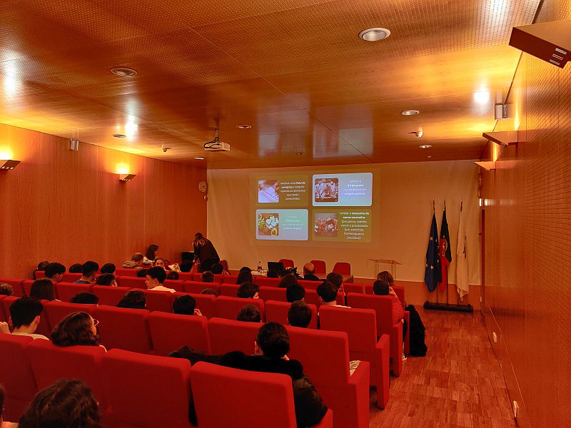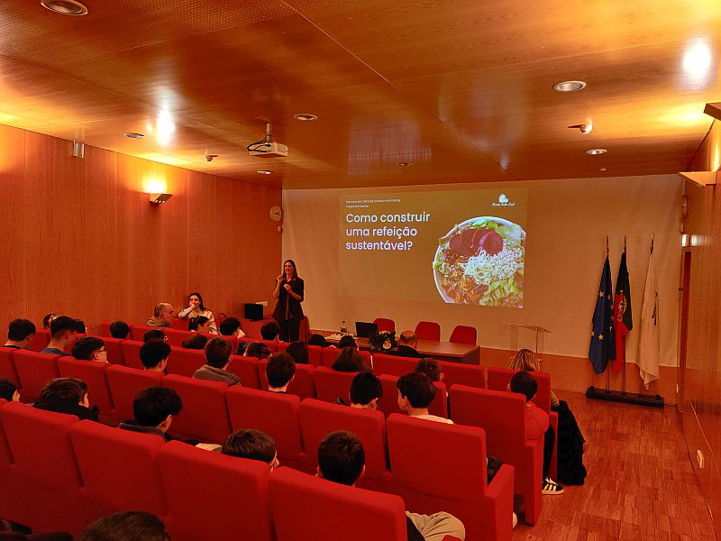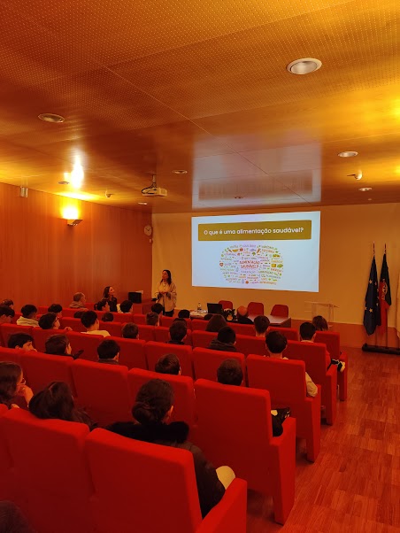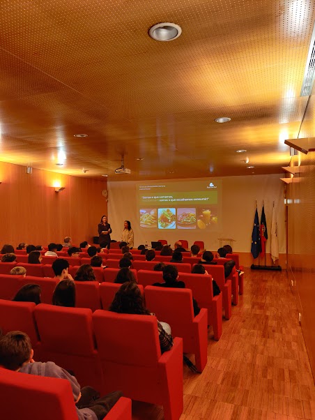No âmbito do Projeto Eco‑Escolas, realizou‑se a palestra “Alimentação saudável: escolhas individuais, impactos coletivos”, dinamizada pelas nutricionistas Marta Babo Leal e Joana Ribeiro.