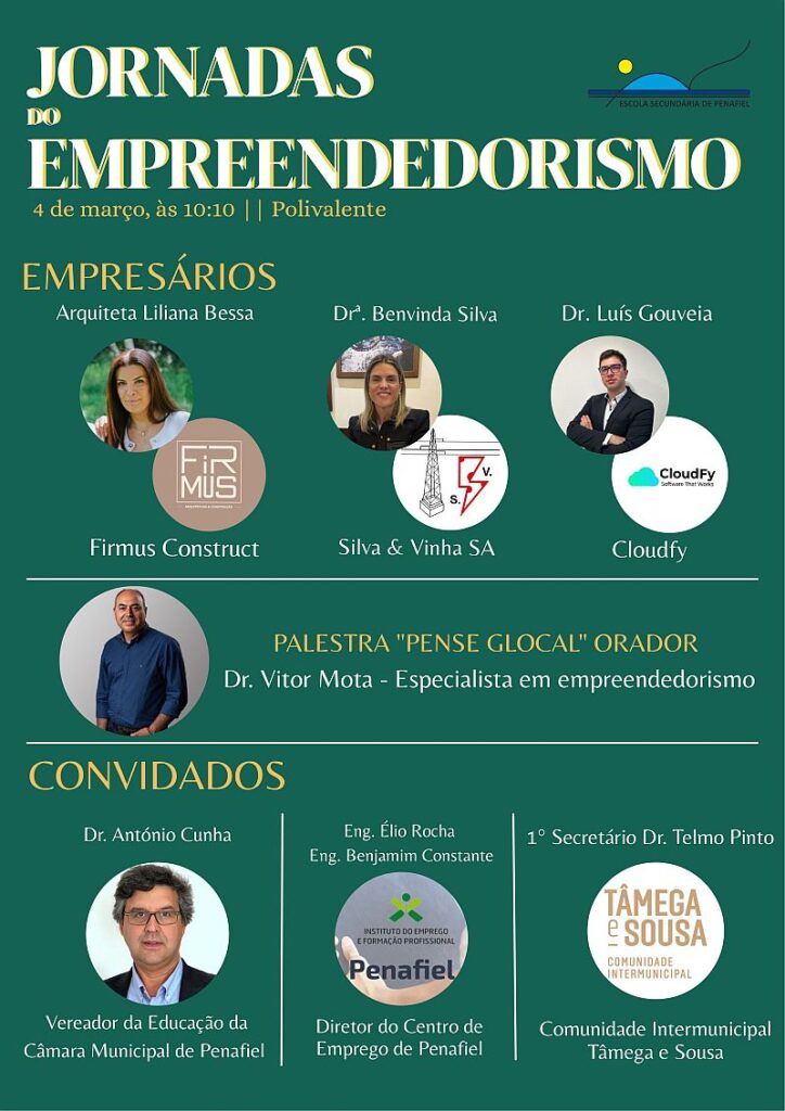 No próximo dia 4 de março, pelas 10h10, no Polivalente, terá lugar uma sessão dedicada ao Empreendedorismo, dirigida às turmas previamente selecionadas.