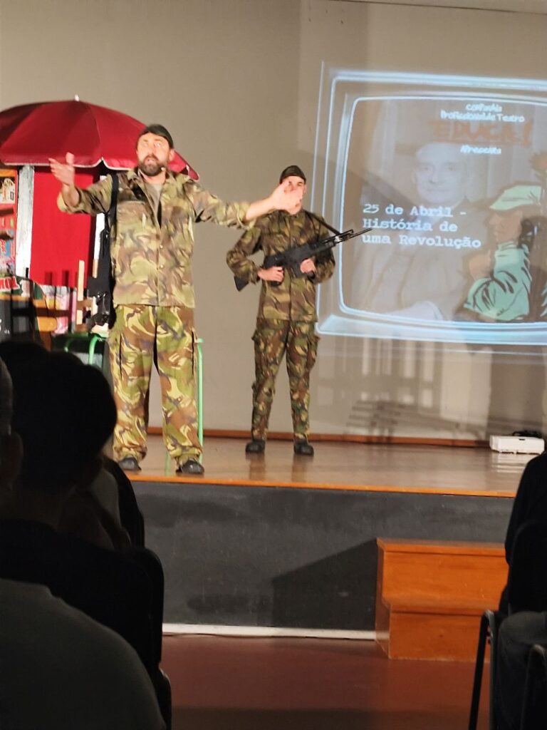 No âmbito das comemorações dos 52 anos da Revolução de Abril, o grupo de História organizou, no dia 20 de abril, uma sessão no Polivalente onde todas as turmas do 9.º ano assistiram à peça “25 de Abril – História de uma Revolução”.